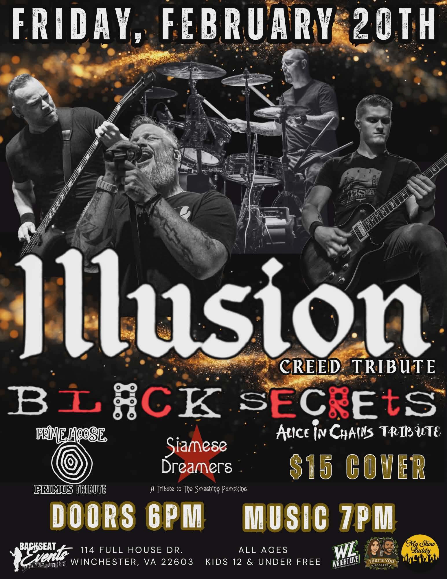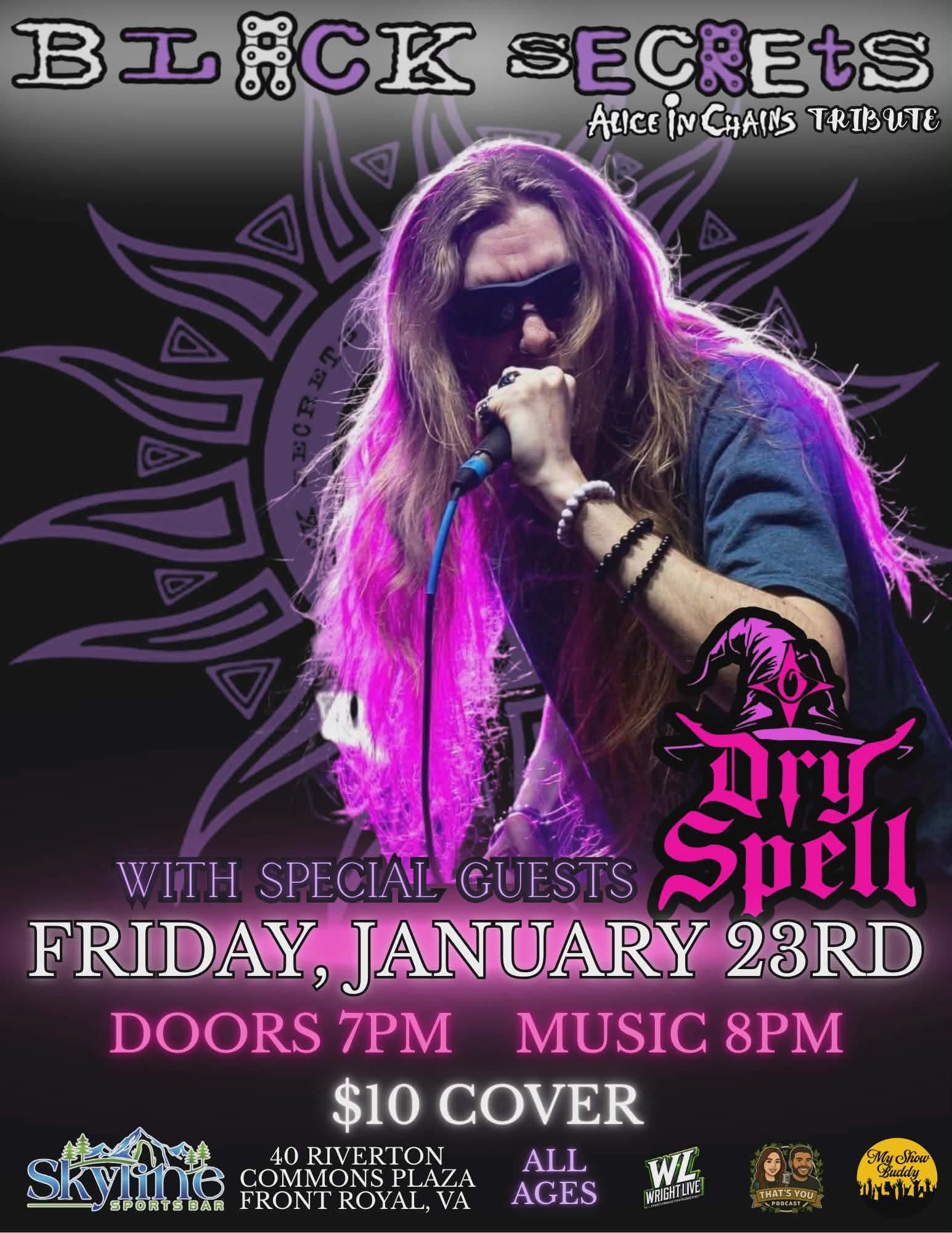 Watch Black Secrets perform We Die Young, Live at the Backseat Event Center in Winchester, VA on 12/28/24. |